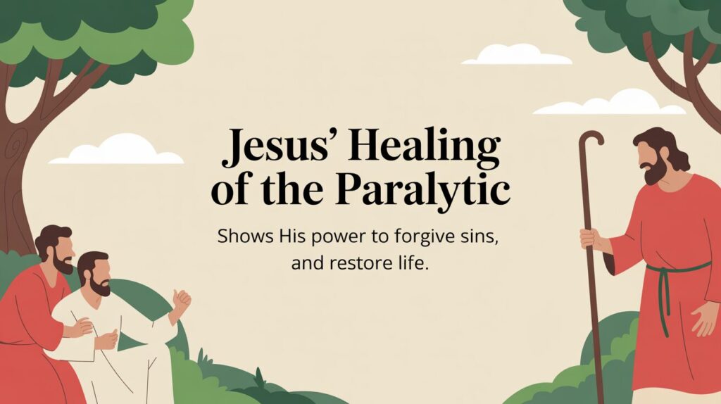 Paralysis here symbolizes spiritual helplessness and the bondage of sin that incapacitates sinners. Just as the man cannot physically move, sin renders the soul immobile and spiritually dead. Jesus’ healing thus vividly illustrates the power of the gospel to renew and empower a person to “walk” in newness of life[Your sermon].
